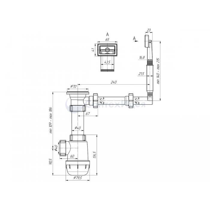• Тип сифона: бутылочный, с увеличенным корпусом