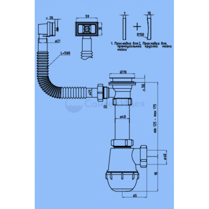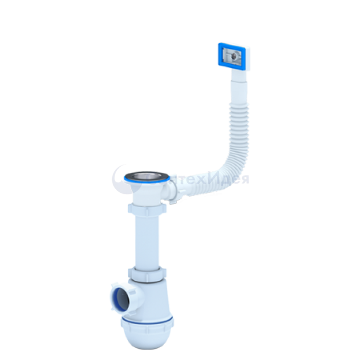 Сифон для кухонных моек с диаметром сливного отверстия 50мм, бутылочного типа с увеличенным корпусом. С разборным выпуском и нержавеющей решеткой, с гибким прямоугольным переливом для моек из нержавеющей стали. Корпус пе...