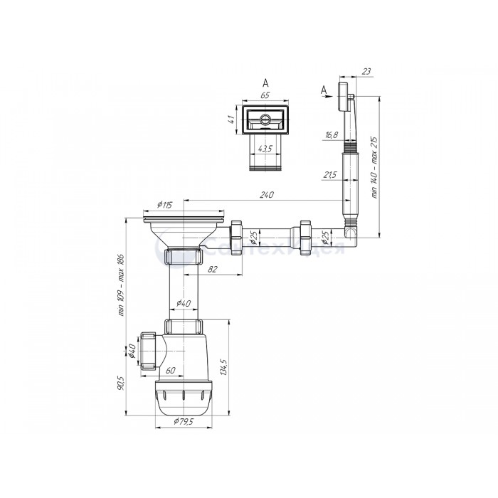 • Тип сифона: бутылочный, с увеличенным корпусом