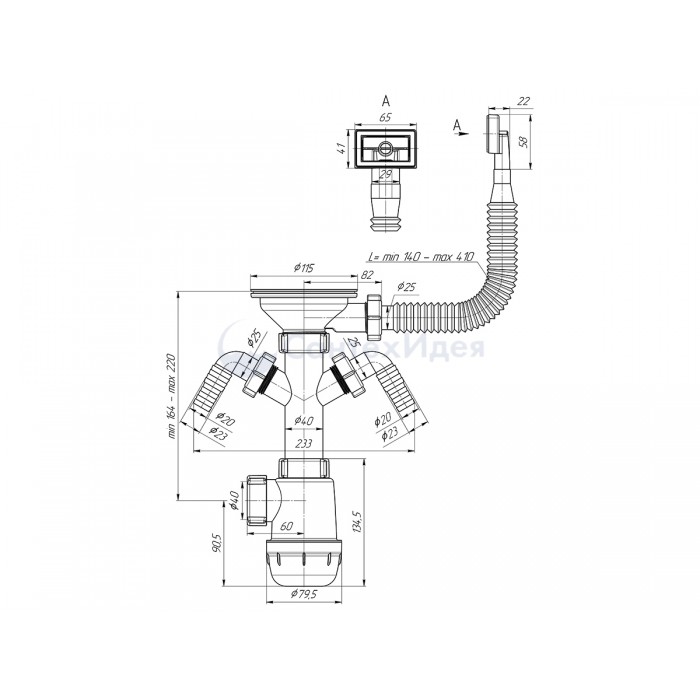 Сифон для кухонных моек с диаметром сливного отверстия 90мм, бутылочного типа с увеличенным корпусом. С разборным выпуском и нержавеющей решеткой, с гибким прямоугольным переливом для моек из нержавеющей стали. Корпус перелива оборудован универсальной прокладкой для круглых и прямоугольных моек, нужная сторона прокладки достигается путем переворота. С двумя отводами для подключения бытовой техники. Выход для подключения к канализации 40мм |