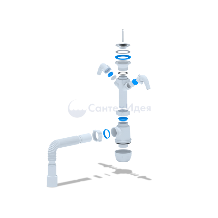 Сифон для кухонных моек с диаметром сливного отверстия 50мм, бутылочного типа с увеличенным корпусом. С разборным выпуском и нержавеющей решеткой , с двумя отводами для подключения бытовой техники. Для подключения к канализации комплектуется гибкой трубой 40*40/50мм |