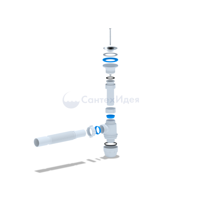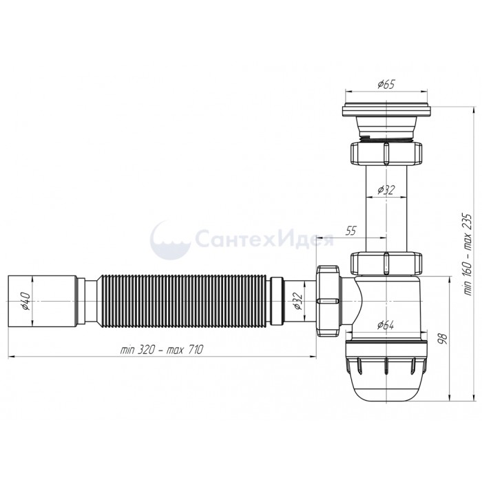 Сифон для умывальника бутылочного типа с уменьшенным корпусом. С нержавеющей решеткой 65мм. Для подключения к канализации комплектуется гибкой трубой 32*40мм
