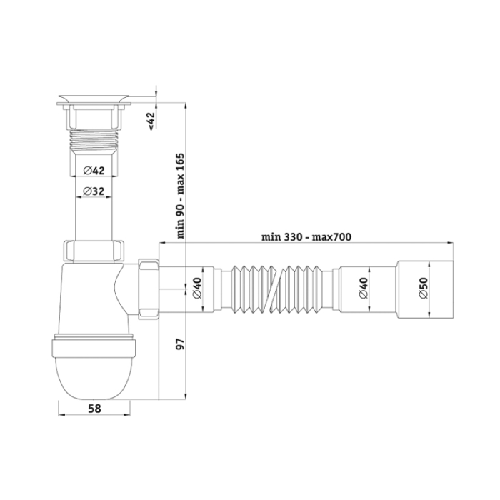 С5015 Варяг сифон с г/трубой 40*40/50