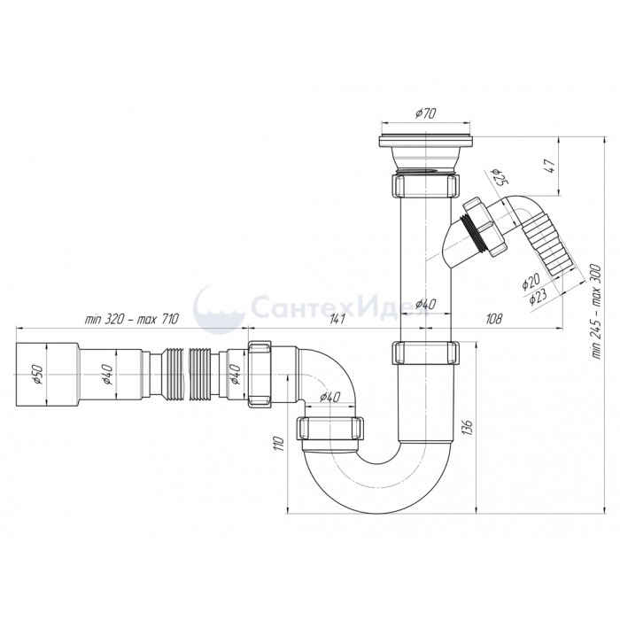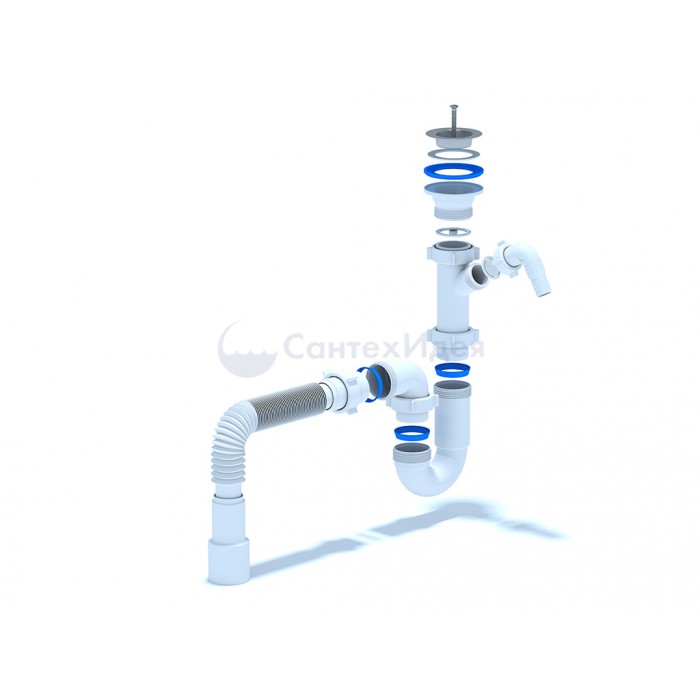• Сифон сливной АНИ пласт D1015 для кухонных моек с диаметром сливного отверстия 50-60 мм