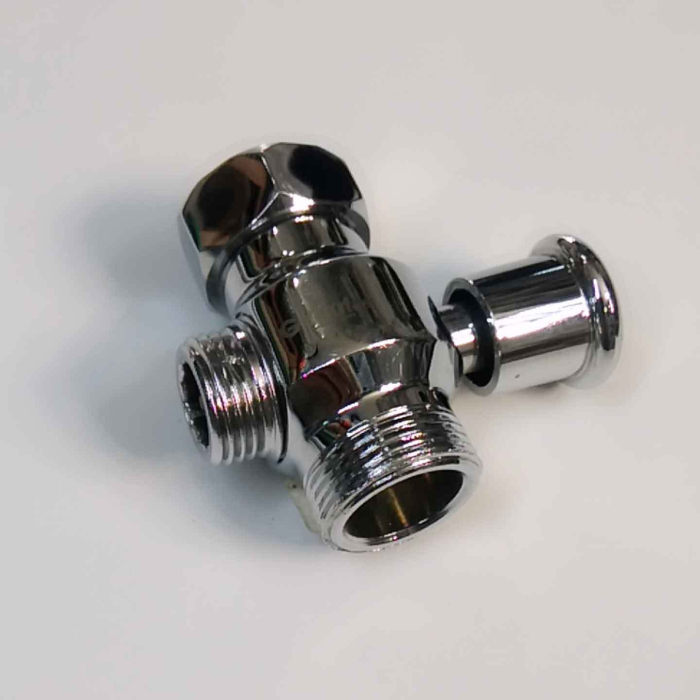 - Дивертор отличается долговечностью эксплуатации, так как выполнен из латуни и имеет хромированное покрытие.