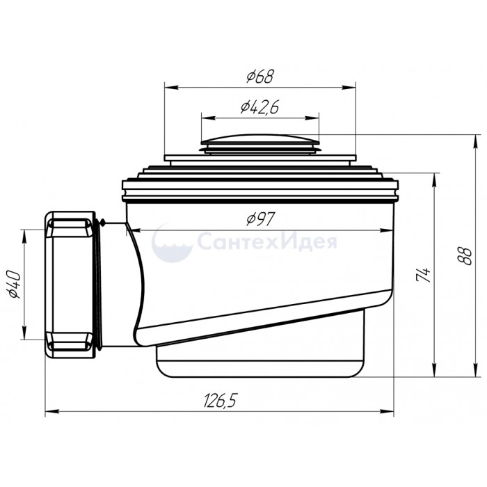 Сифон для душевого поддона. Монтажная высота 77мм |