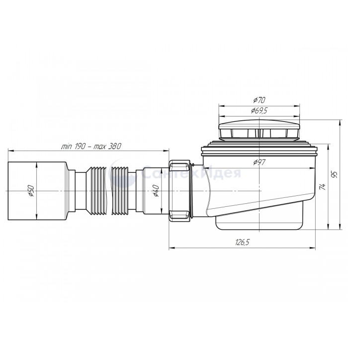 • Сифон сливной АНИ пласт E415C для душевого поддона