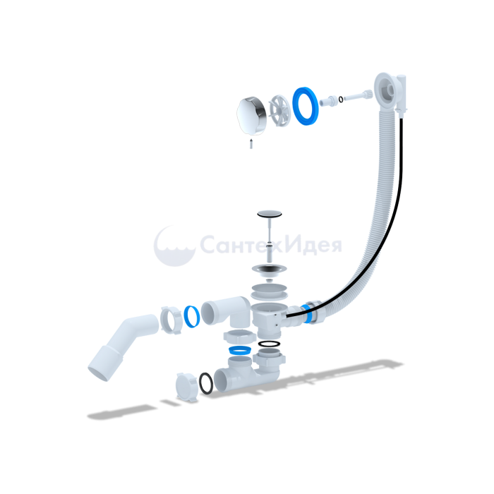 • Сифон сливной регулируемый АНИ пласт EM321 для ванны, полуавтомат с переливом.