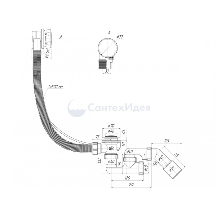 • Сифон сливной АНИ пласт EM421 для ванны, полуавтомат с переливом.