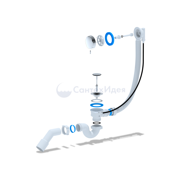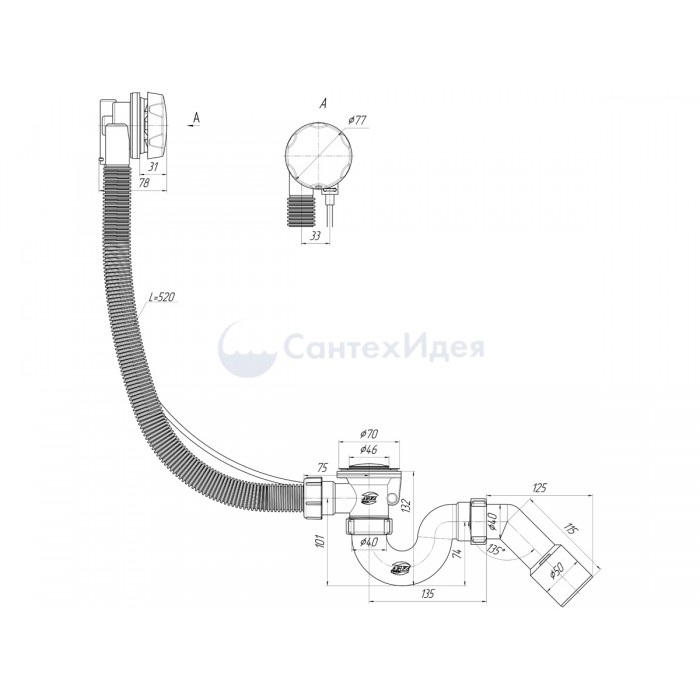 Перелив полуавтомат для ванны длина троса 580мм материал ручки металл