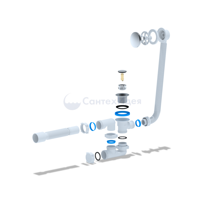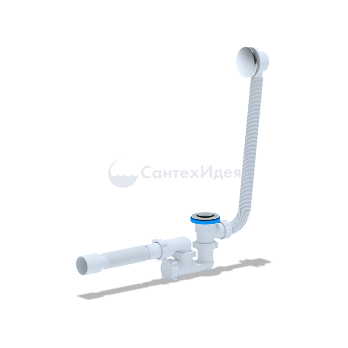 • Сифон сливной АНИ пласт EC255S для ванны с выпуском "клик-клак", сеткой и переливом.