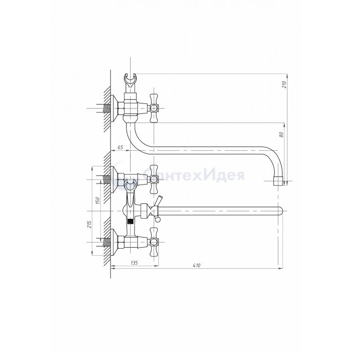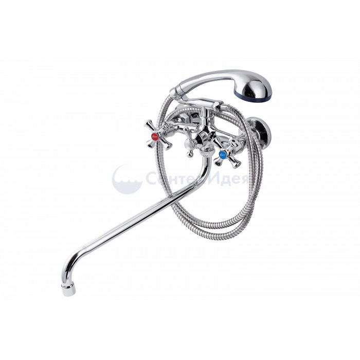 Смеситель, эксцентрики-2шт., декоративная шайба (отражатель)-2шт., шланг душевой, лейка душевая, держатель душевой лейки, паспорт.