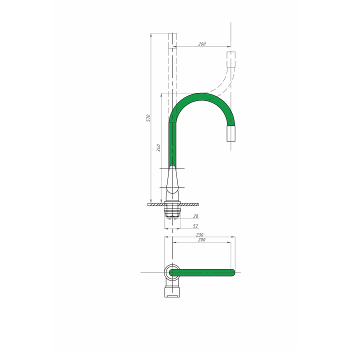 FZs-822-G101 Смеситель FAUZT д/мойки зеленый