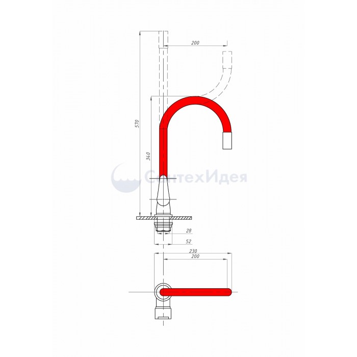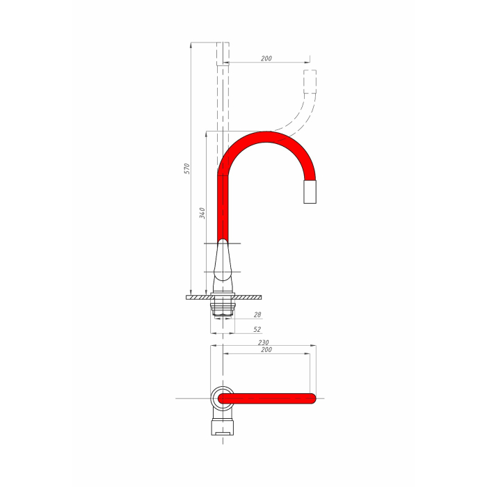FZs-822-R101 Смеситель FAUZT д/мойки красный
