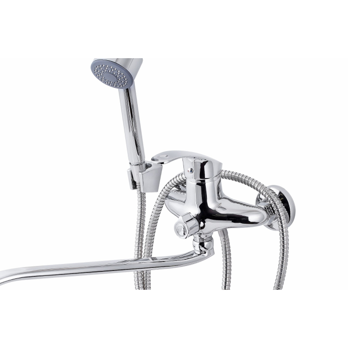 Смеситель, эксцентрики-2шт., декоративная шайба (отражатель)-2шт., шланг душевой, лейка душевая, держатель душевой лейки, паспорт.