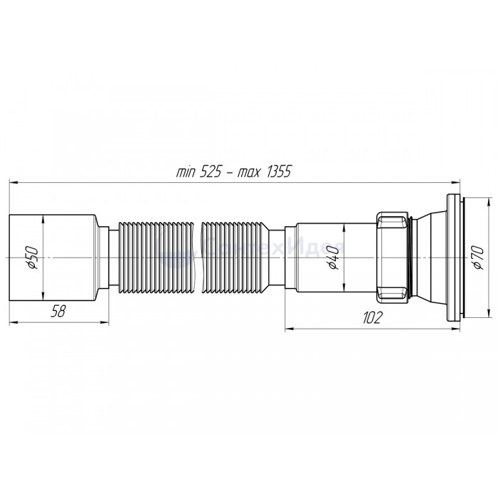 Сифон гофрированный для мойки длина 525-1355мм