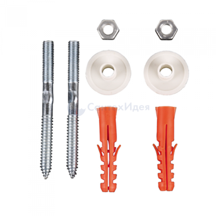 Предназначен для крепления раковин к стене. Он имеет: 2 стальных винта 120 мм, 2 гайки, 2 дюбеля, 2 фигурных прокладки