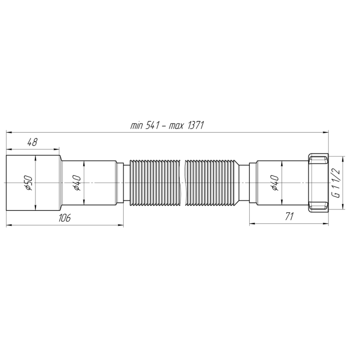 К116 Гибкая труба 1 1/2"*40/50 удлиненная (541-1371мм)