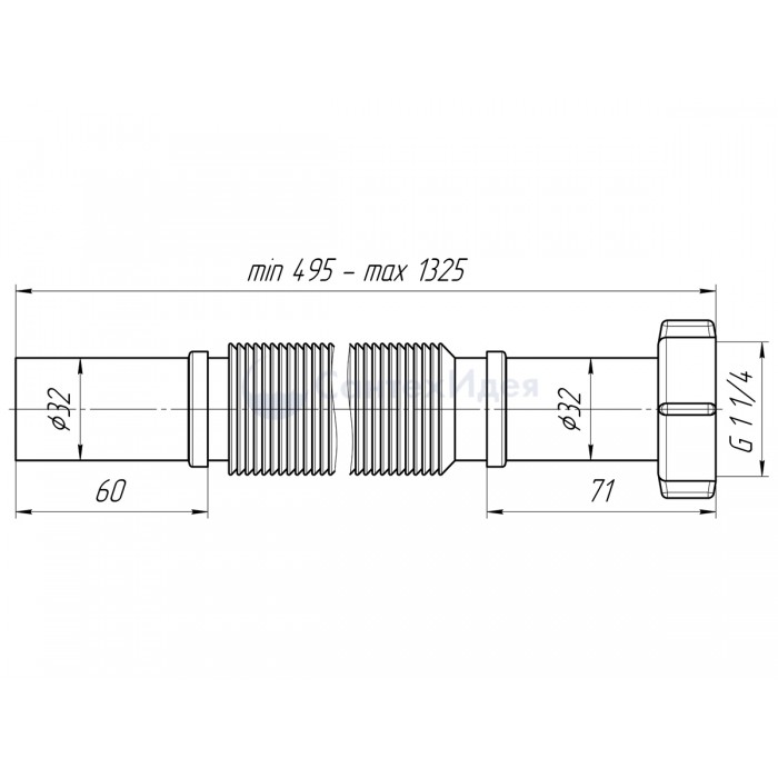К213 Гибкая труба 1 1/4"*32 удлиненная (495-1325мм)