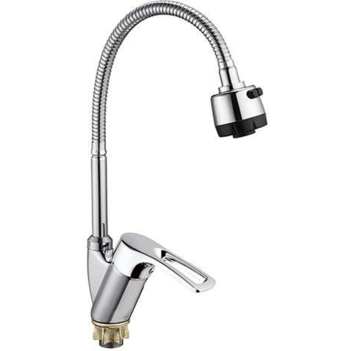 Смеситель для мойки Solone (KAK4-B181) изготовлен при помощи технологии литья под высоким давлением. Крепление на коронообразной гайке обеспечивает легкий монтаж на мойку. Независимое крепление излива к корпусу обеспечивает угол поворота на 360° и не позволяет ему со временем самораскрутиться. Корпус выполнен из цинка, керамический картридж диаметром 40 мм. Излив представляет собой гофрированную гибкую трубку. Имеется кнопочный аэратор с 2 режимами подачи воды. В комплекте: смеситель, гибкая подводка 1/2 (длина 400 мм), комплект креплений.