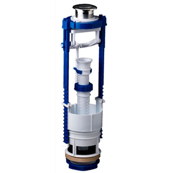 Арматура спускная КВ-16.1М кнопочная. Данная арматура качественно отличается от штоковых арматур, при этом она включает в себя лучшие их качества. Арматура универсальная: устанавливается в "средние" бачки (высота до крышки бачка от 310 мм до 390 мм), и "высокие" (высота до крышки бачка 420 мм).