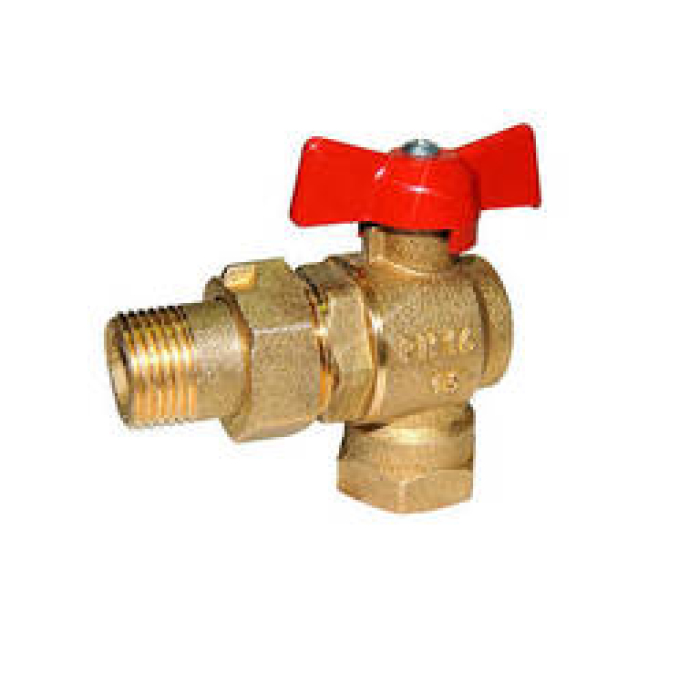 Кран угловой отличается от стандартного крана своей формой – он образует колено под прямым углом, ручкабабочка располагается параллельно одной из сторон угольника. Кран имеет с одной стороны муфту с внутренней резьбой G1...