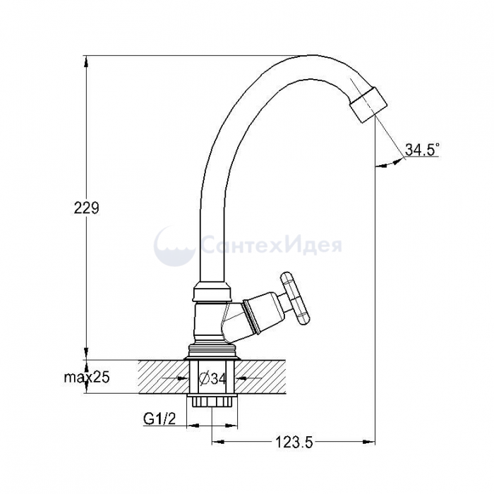 Кран для одной воды Solone (JIK1-A102-A) изготовлен по технологии литья под высоким давлением. Монтируется на мойку посредством гайки. Корпус выполнен из цинка. Кран имеет поворотный излив на 360°, аэратор с внутренней резьбой, керамическую кран-буксу (1/2) с поворотом 90°. Вентиль расположен справа.
