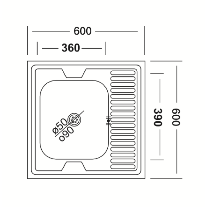 Размеры 60x60x13Толщина 0.4Поверхность матоваяПоложение чаши - правая...