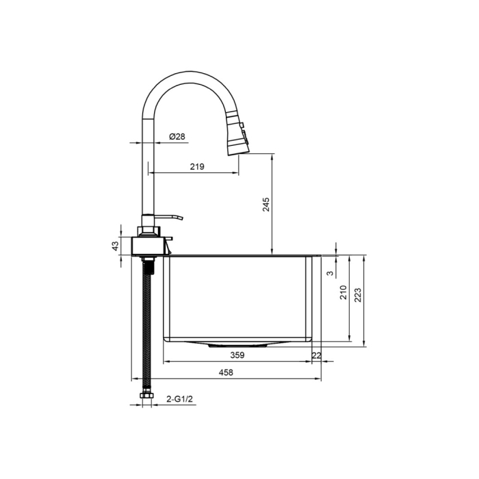 - В комплекте с мойкой идет полуавтоматический ринзер, который позволяет облегчить процесс промывки стаканов и других кухонных предметов. Это удобное дополнение, которое обеспечивает сильный и точечный напор воды для более эффективной очистки.