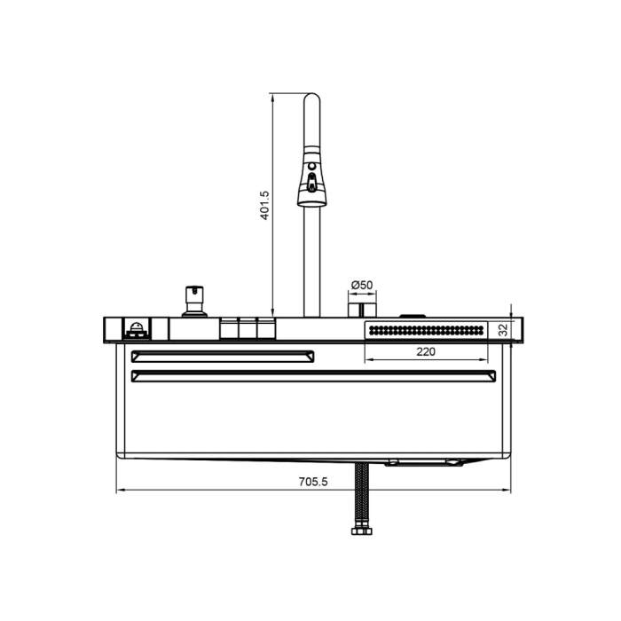 - Мойка имеет встроенный смеситель с выдвижным изливом с тремя режимами.