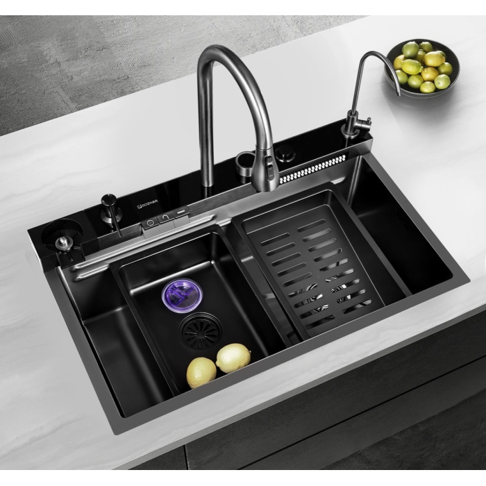 - Мойка оснащена амбиентной подсветкой, которая создает приятную атмосферу в кухне и добавляет стильный эффект освещения. Кроме того, подсветка рабочей зоны облегчит работу на кухне.