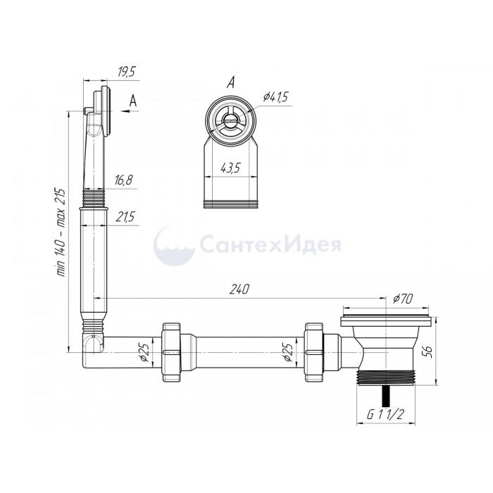 Выпуск с нержавеющей решеткой 70мм и круглым жестким вертикальным переливом |