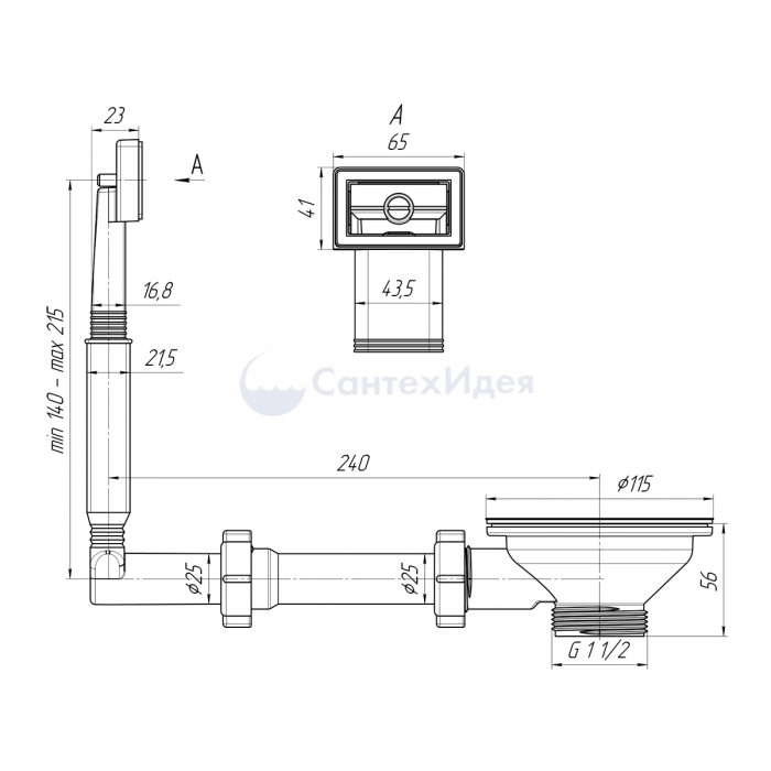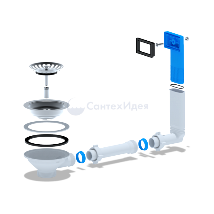 Выпуск с нержавеющей решеткой 115мм и жестким прямоугольным переливом. Корпус перелива оборудован универсальной прокладкой для круглых и прямоугольных моек из нержавеющей стали со сливным отверстием 90мм |