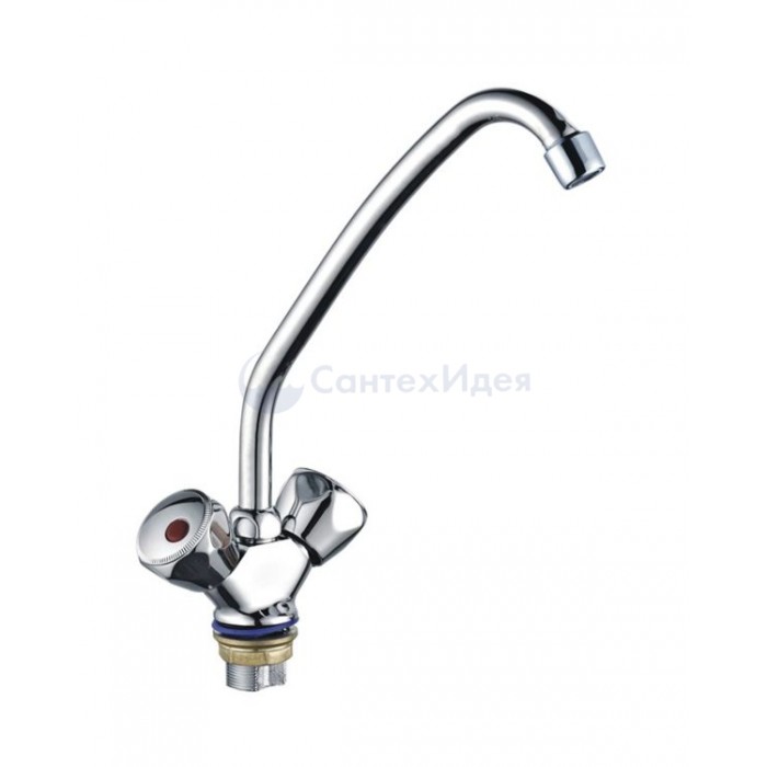 - Двухвентильная модель отличается наличием двух маховиков, которые обеспечивают регулирование потока и температуры воды. Маховики имеют каждый свою цветовую индикацию, что позволит не перепутать назначение каждого вентиля при установке и дальнейшем использовании.