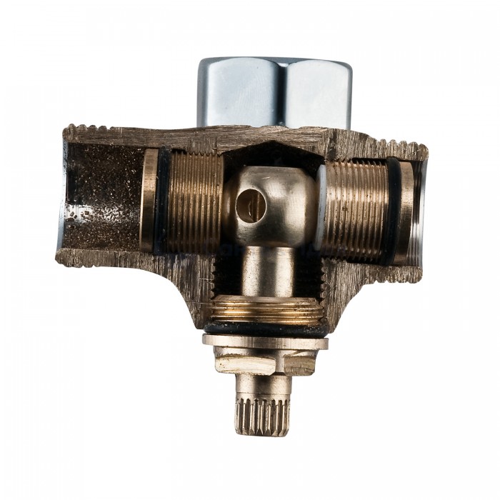 Двухвентильный смеситель для ванной с душем ПСМ ПрофСан 165-К/99 имеет сборно-разборный латунный корпус. Переключение ванна-душ осуществляется при помощи шарового механизма и керамических кран-букс. Латунный шар вращается между фторопластовыми прокладками, в зависимости от положения флажка вода подается либо на душевую лейку, либо в излив.