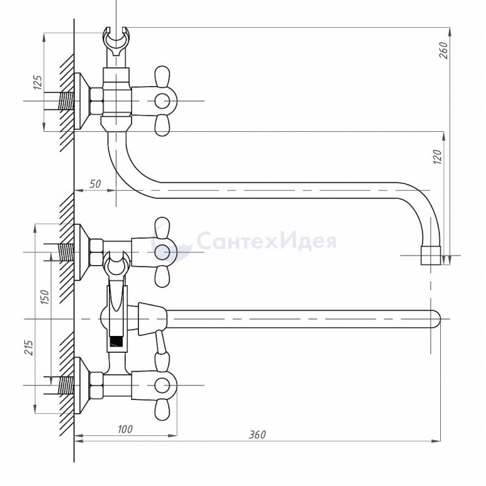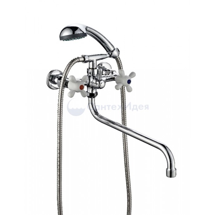 Наименование смесителя по ГОСТ 25809-96: | Смеситель общий для ванны и умывальника, двухрукояточный, раздельный, настенный, с душевой сеткой на гибком шланге, с аэратором |