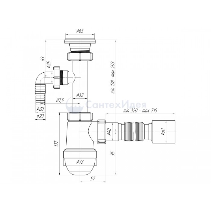 • Тип сифона: бутылочный
