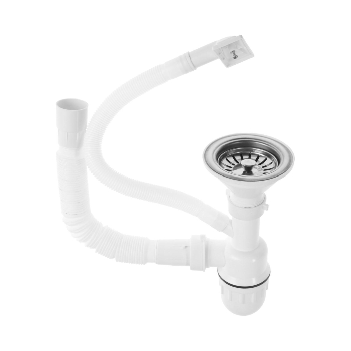 Классический сифон для кухонной мойки с большим отверстием для слива воды (выпуском). Подходит для кухонных моек из нержавейки и каменных моек.