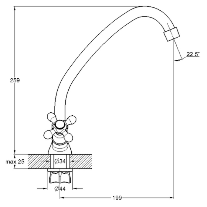 Смеситель для мойки GLAUF (QFR4-A827) изготовлен по технологии литья под давлением. Смеситель монтируется на кухонную мойку посредством гайки. Корпус выполнен из цинка. Смеситель имеет поворотный излив (длина 199 мм)на...