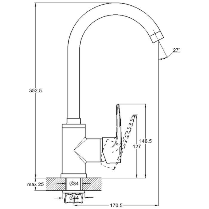 ZAR4-B181KB Смеситель для кухни 1 ручк