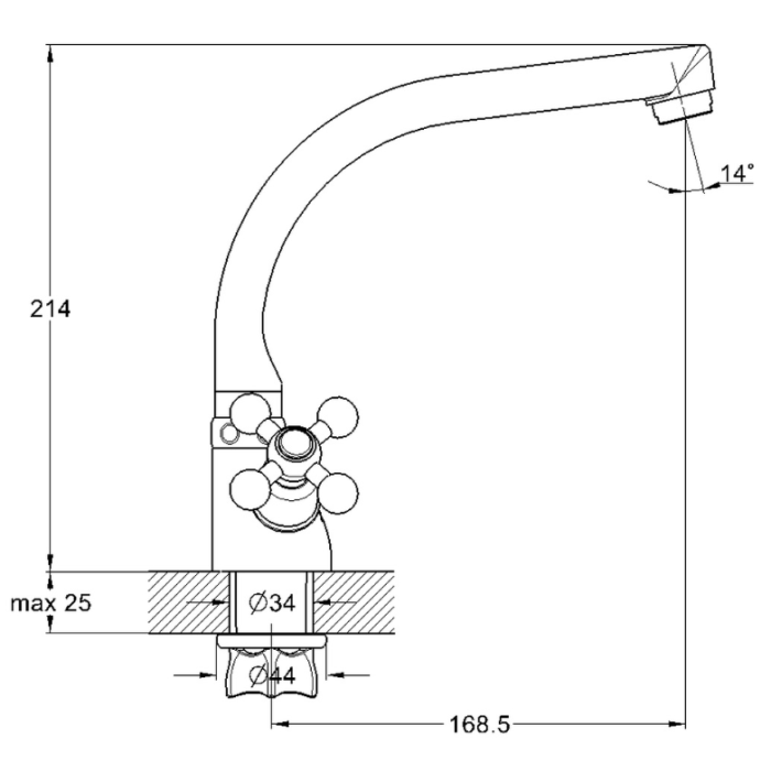 Смеситель для мойки GLAUF (QTZ4-D827) изготовлен по технологии литья под давлением. Смеситель монтируется на кухонную мойку посредством гайки (корона). Корпус выполнен из цинка. Смеситель имеет поворотный излив (длина 16...