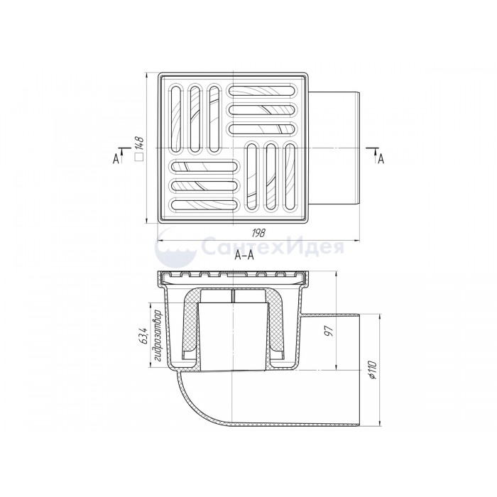 ТА1112 Трап гориз. н/р с вып. 110мм, с нерж. реш. 150*150