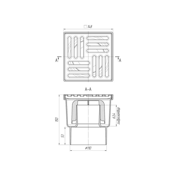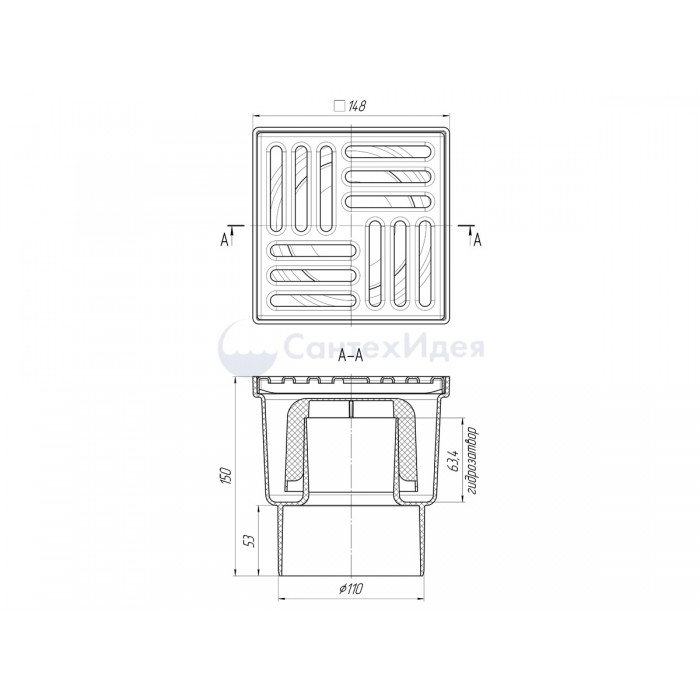 ТА1212 Трап вертик. н/р с вып. 110мм, с нерж. реш. 150*150