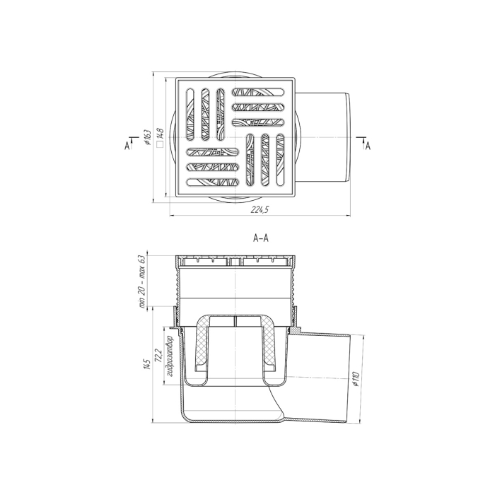 • Точечный горизонтальный сливной трап с гидрозатвором TA1610