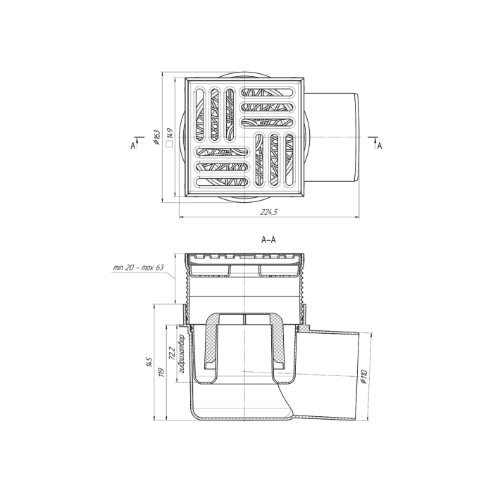 • Точечный сливной трап с гидрозатвором TA1612