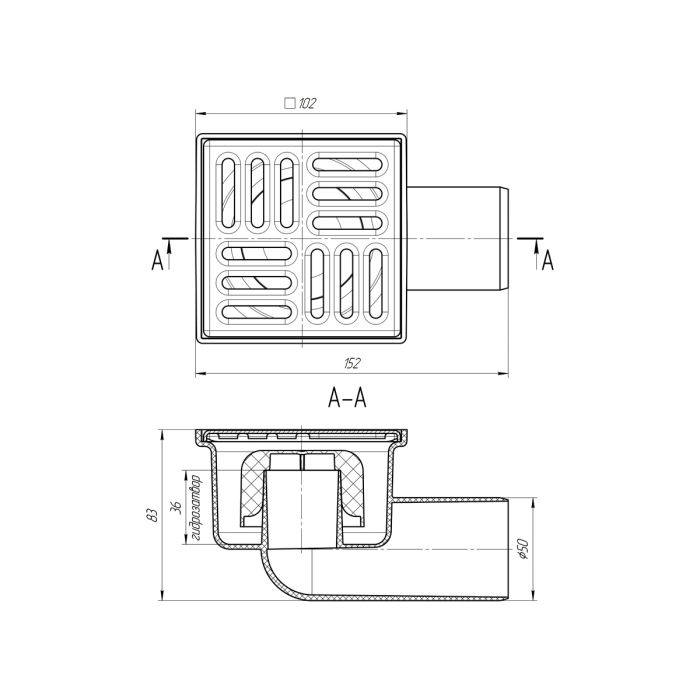 ТА5102 Трап гориз. н/р с вып. 50мм, с нерж. реш. 100*100