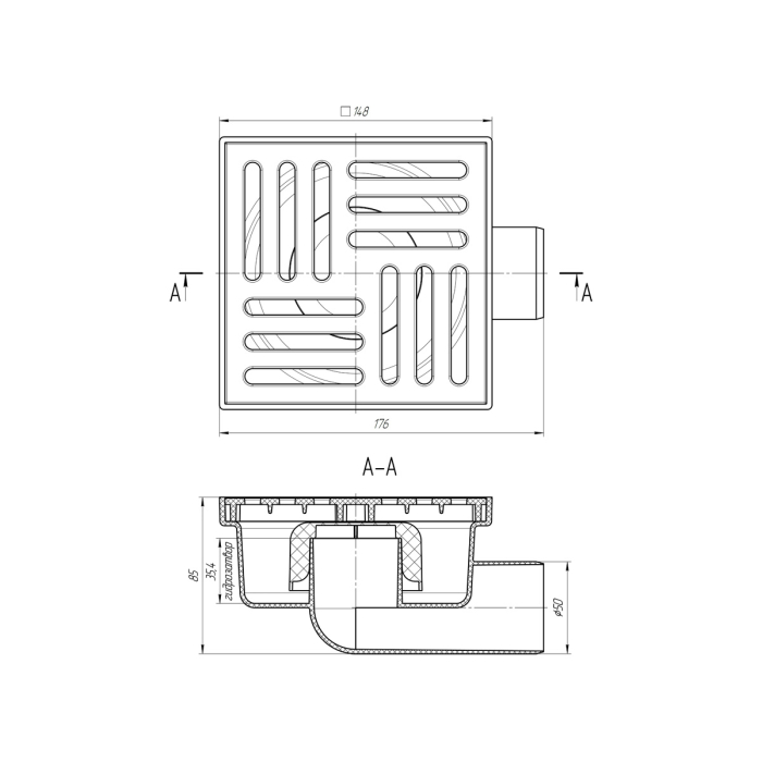 ТА5110 Трап гориз. н/р с вып. 50мм, с пласт. реш. 150*150