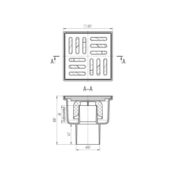 ТА5204 Трап вертик. н/р с вып. 50мм, с пласт. реш. 100*100
