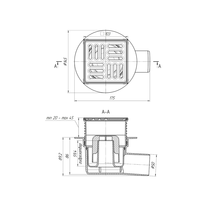 ТА5602 Трап гориз. рег. с вып. 50мм, с нерж. реш. 100*100