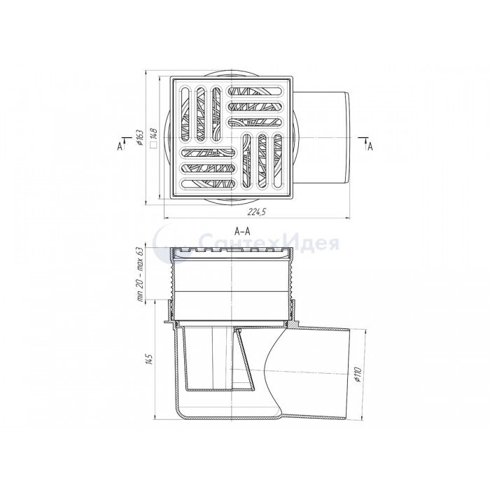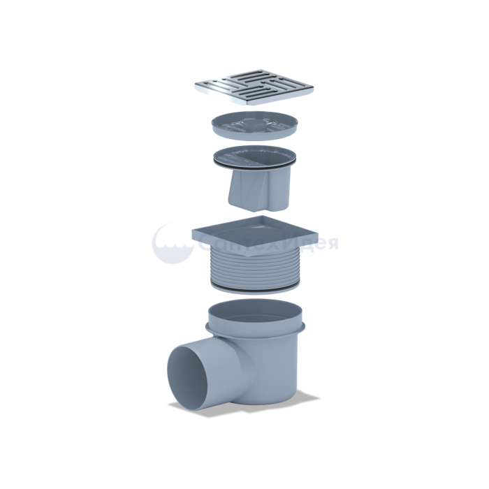 ТQ1612 Трап гориз. рег. с вып. 110мм, с нерж. реш. 150*150 сухой